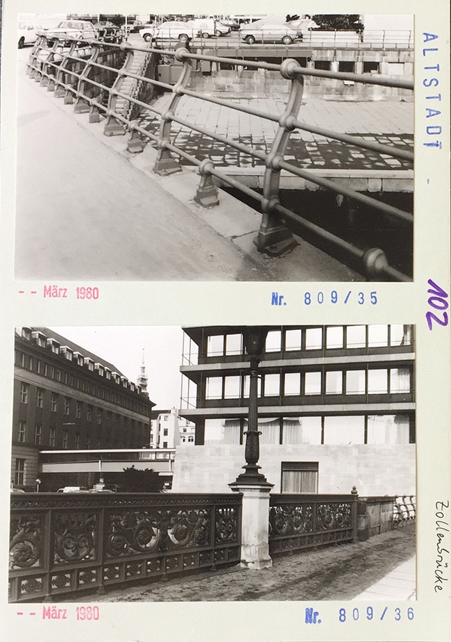 (1) Vgl. https://www.hamburg.de/museum-der-arbeit/1540198/hamburgs-bruecken/ (2.9.19) (2) Vgl. Archivmaterial des Amts für Denkmalschutz. (3) Vgl. ebd. (4) Vgl. ebd. (5) Vgl. https://www.mahnmal-st-nikolai.de/?page_id=268 (2.9.19) (6) https://www.mahnmal-st-nikolai.de/?page_id=344