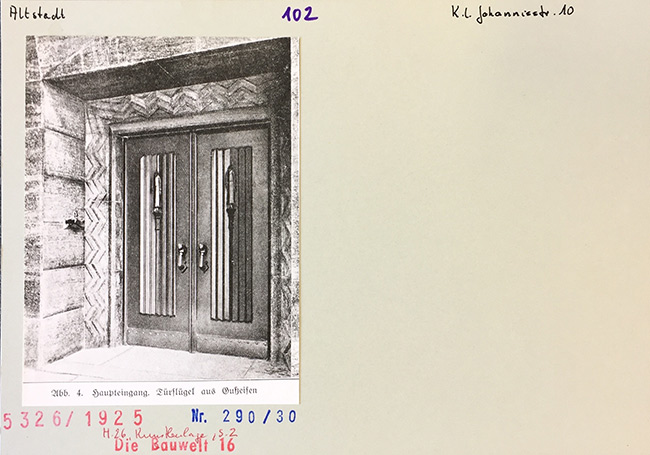 (1) K 433, 13. Juni 2008, Archivmaterial aus dem Amt für Denkmalschutz. (2) Ralf Lange: Das Hamburger Kontorhaus – Architektur, Geschichte, Denkmal. München 2015.